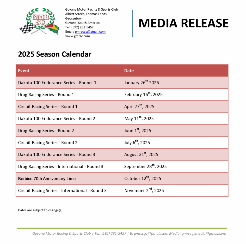 © 2019 Guyana Motor Racing and Sports Club.