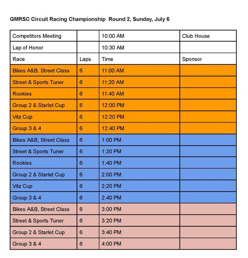 Competitor’s List: https://www.gmrsc.com/wp-content/uploads/2025/07/2025-GMRSC-Circuit-Racing-Series-Round-2-Competitors-List-Public.pdf
